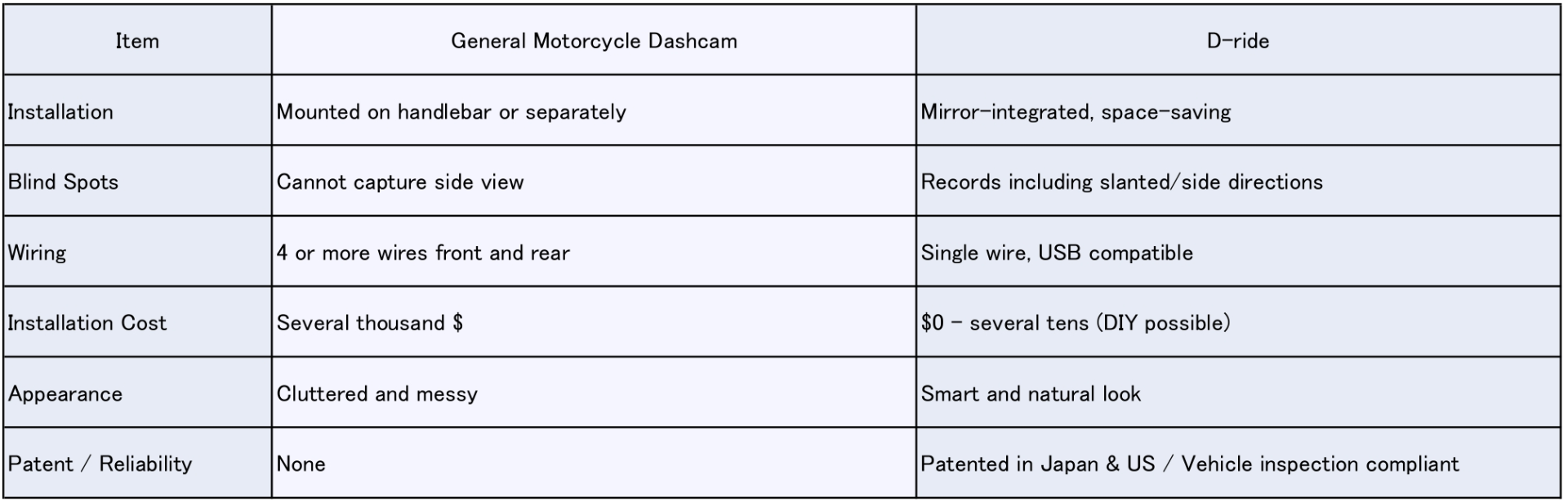 This product is truly one-of-a-kind, combining patented competitive advantages with the ability to meet the unique needs of motorcycle dashcams.