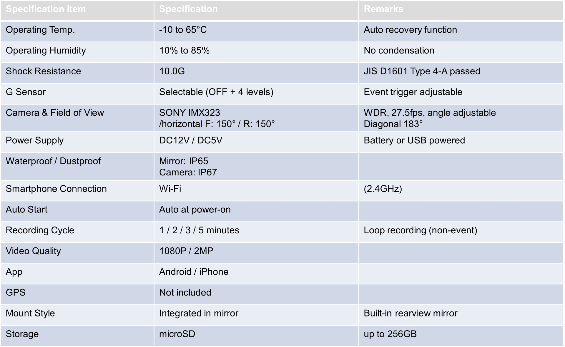 ・A drive recorder (video recording device) that complies with safety standards (vehicle inspection approved in Japan) and enables "self-