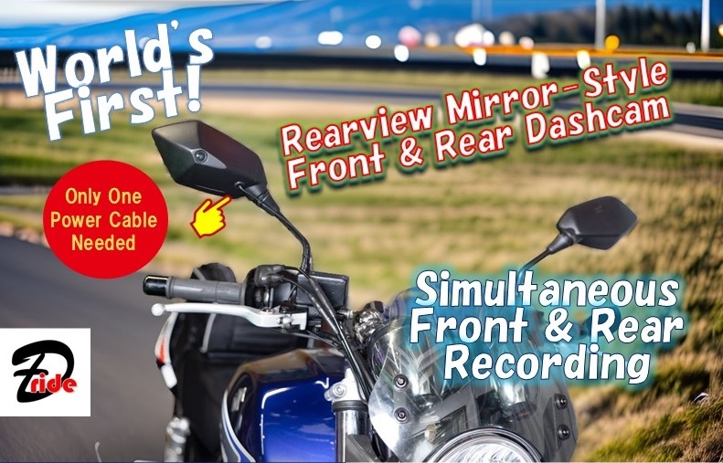 ▶ D-ride® is the world's first mirror-integrated front and rear dashcam for motorcycles, developed to "save lives."